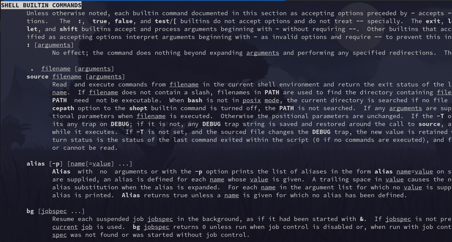 Search for the Shell Builtins section: